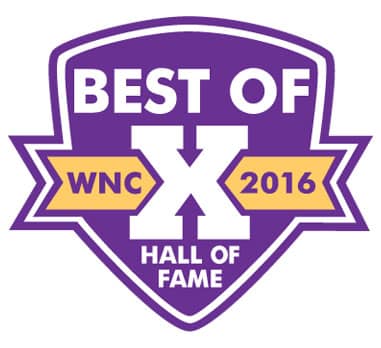 - Inducted into the Mountain Xpress ‘Best of WNC’ Readers’ Poll HALL of FAME in 2016